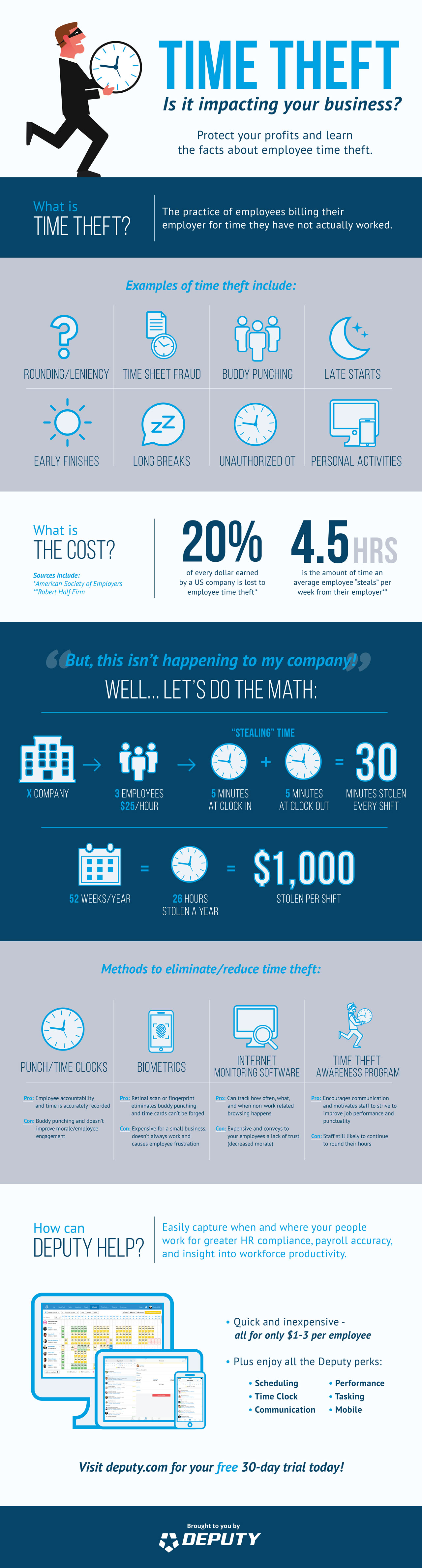 On average, employees steal 4.5 work hours a week from employers by not working when they say they are. That translates to 20 cents for every dollar earned.